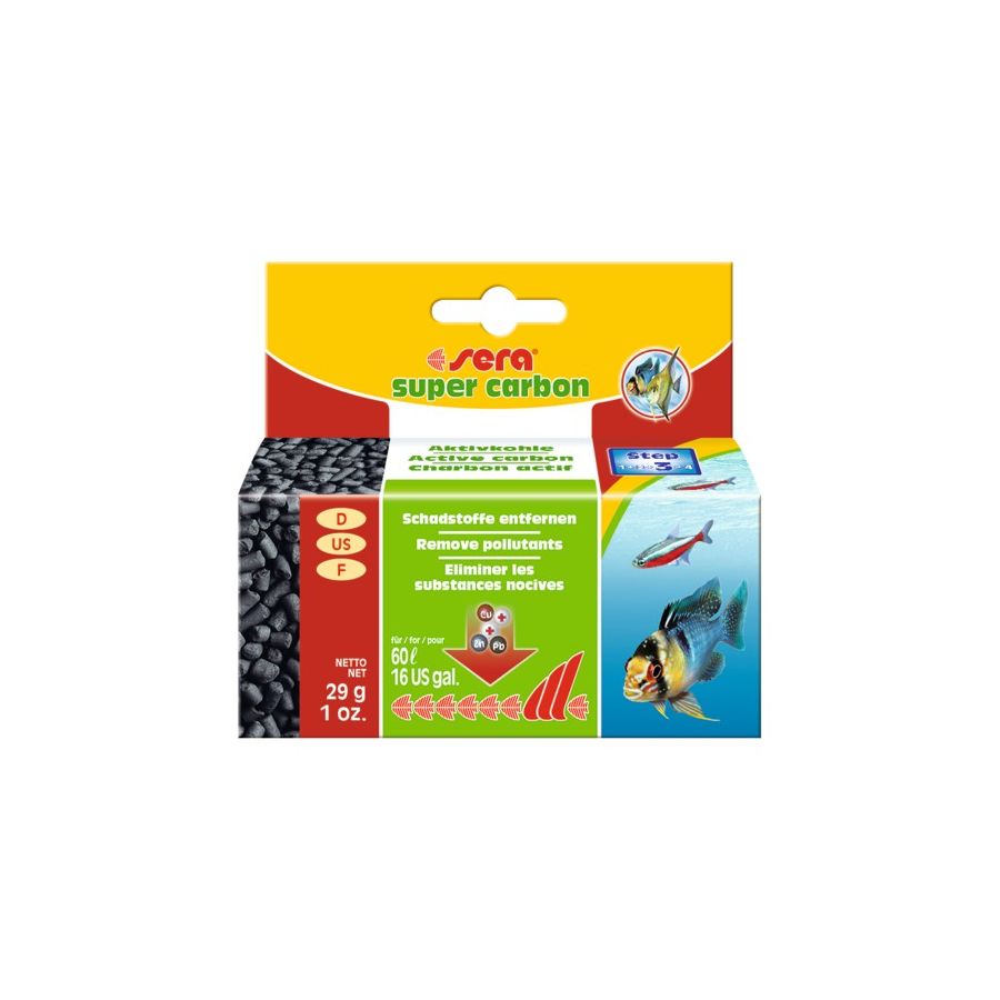 sera super carbon można również użyć w przypadku niebezpiecznych zatruć (np. gdy podejrzane zanieczyszczenia dostały się do wody w czasie naprawy akwarium, z nieodpowiednich dekoracji, przedawkowania preparatów, itp.) jak również przy usuwaniu uciążliwych przebarwień wody.