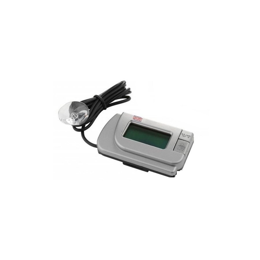 Precyzyjny elektroniczny termometr marki Ebi. Stale pokazuje temperaturę wody w akwarium. Termometr posiada zewnętrzny sensor temperatury montowany w akwarium. Czytelny wyświetlacz, szeroka skala 0-50ºC, baterie w komplecie.