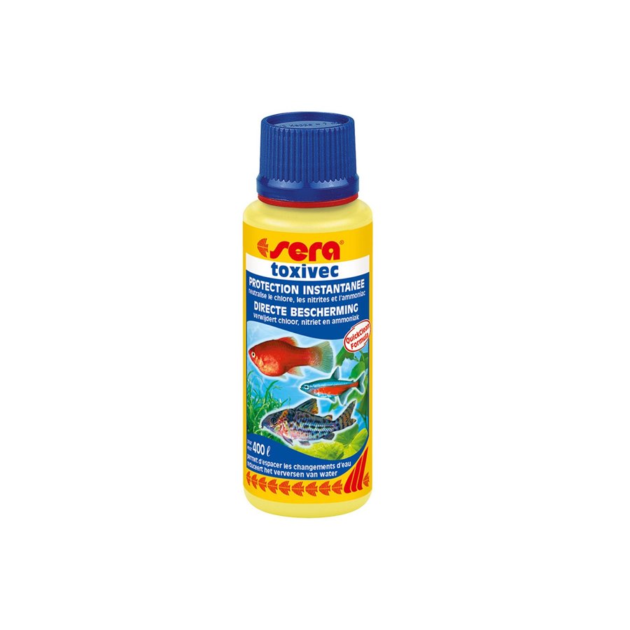 Sera toxivec natychmiast usuwa chlor, chloraminę, amon, amoniak i azotyny, co zapobiega powstawaniu azotanów. Pozostałości po leczeniu ryb zostają rozłożone. Produkt sera toxivec z innowacyjną formułą QuickClean usuwa z wody akwariowej wszystkie niebezpieczne zanieczyszczenia.
